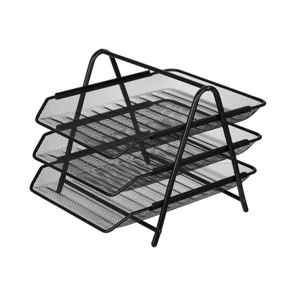 3-секционный горизонтальный лоток для бумаг "Attache". Подходит для компактного хранения листов формата А4. Позволит грамотно и удобно организовать рабочее пространство. Выполнен из металлической сетки черного цвета. Размер (ДхШхВ): 355x295x267 мм.