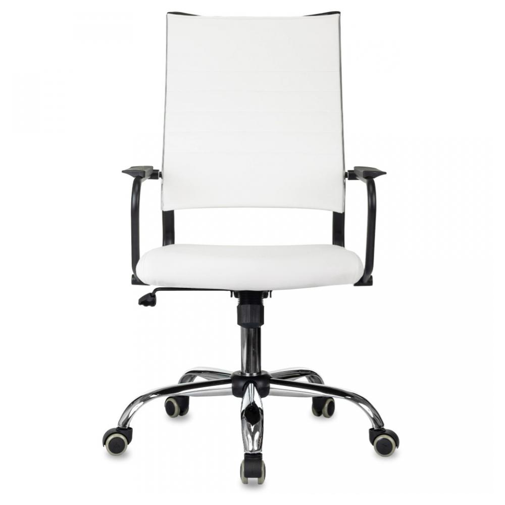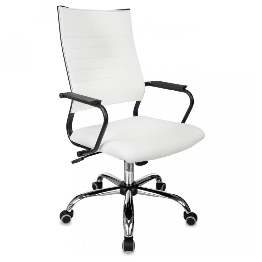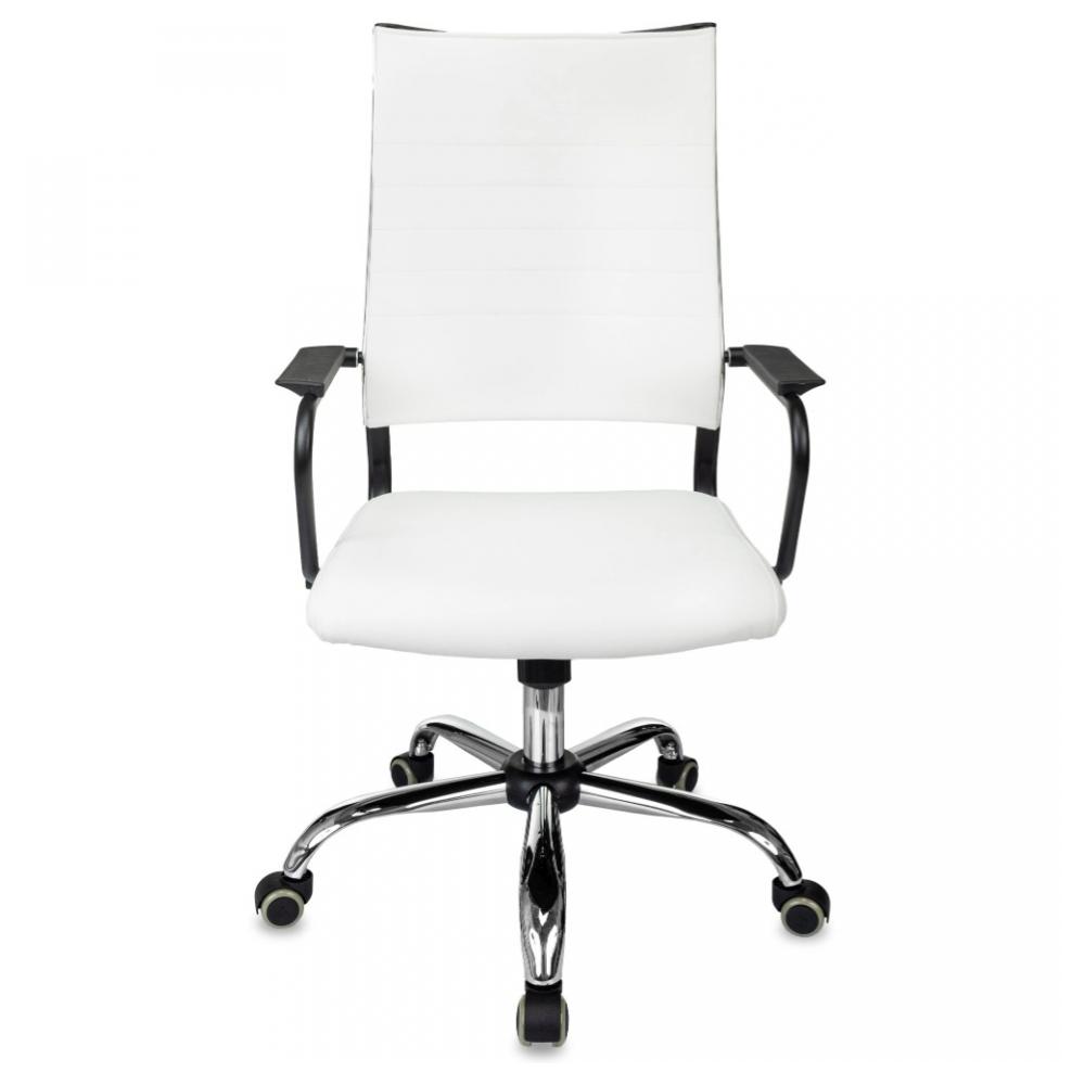 Стильное кресло руководителя Конструкция: Механизм качания с регулировкой под вес и возможностью фиксации в рабочем положении Регулировка высоты(газлифт) Подлокотники металлические с пластиковыми накладками Крестовина металлическая хромированная Колеса для паркета и ламината Ограничение по весу: 150 кг Соответствует стандарту BIFMA Материал обивки: экокожа Упаковка: масса: 12,80 кг объем: 0,108 м³ габариты (мм): 770 х 220 х 625