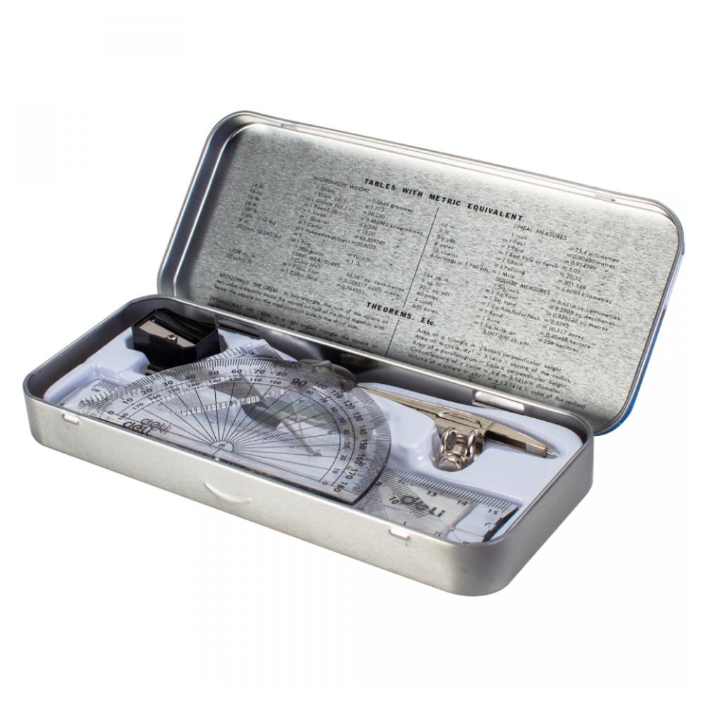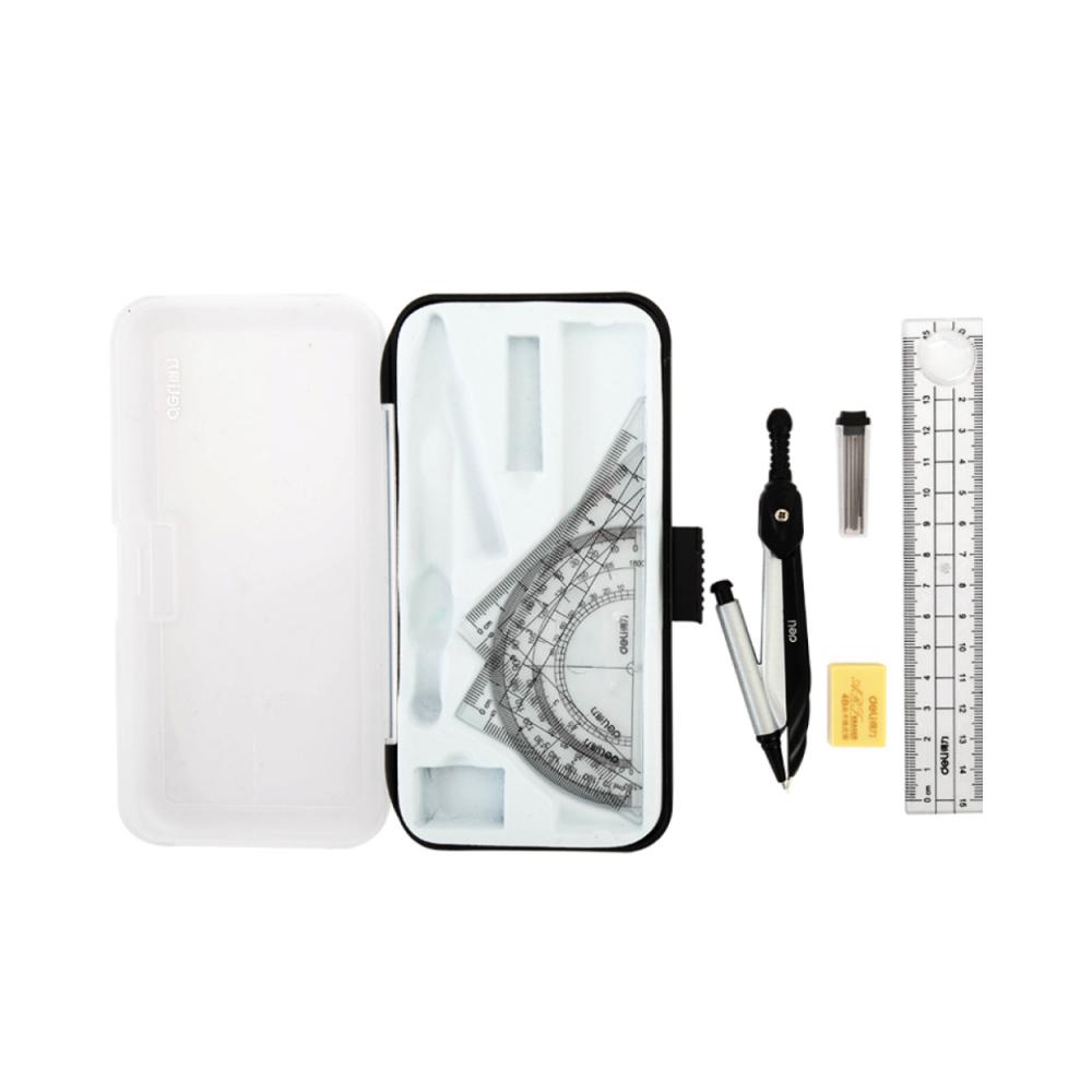 Набор для черчения Deli 72150 — это компактный и надёжный комплект из 7 предметов, выполненный из прочного серебристого пластика, идеально подходящий для школьников, студентов и начинающих дизайнеров. Внутри — всё необходимое для точных построений: циркуль с регулируемым радиусом, линейка, транспортир и два угольника, а также дополнительные аксессуары для удобной работы. Эргономичный дизайн, чёткая разметка и устойчивость к износу делают этот набор практичным помощником в учебе, чертёжных задачах и графических проектах.