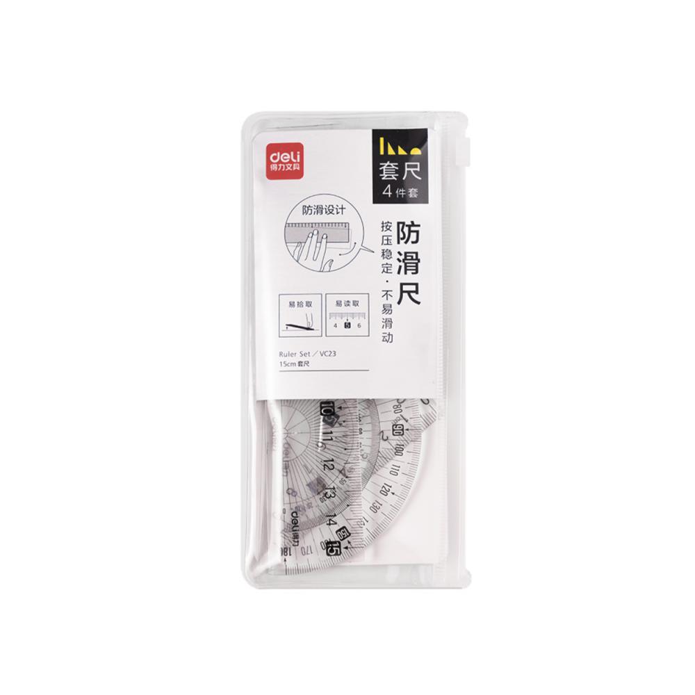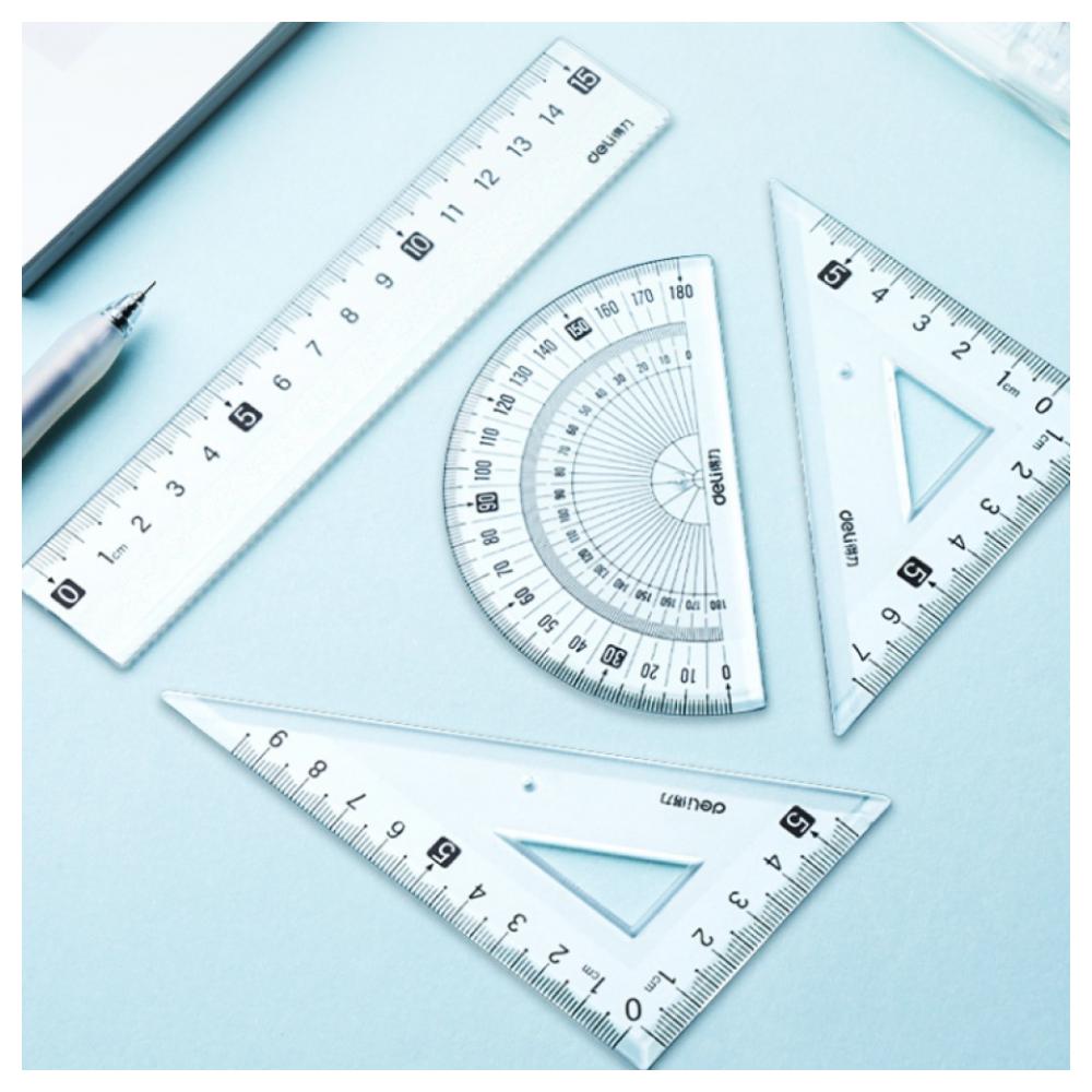 Набор чертежный "Deli VC23" включает четыре прозрачных инструмента для точных измерений и построений: линейку длиной 15 см, два треугольника с углами 45° и 60°, а также транспортир на 180°. Все элементы выполнены из прочного прозрачного пластика, что обеспечивает удобство использования и позволяет видеть линию подложки. Идеально подходит для учебы, работы и творческих проектов, обеспечивая точность и комфорт при черчении и измерениях.